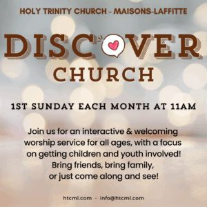 SAFEGUARDING NOTICE: Holy Trinity is an international English-speaking church in the west of Paris and part of the Church of England. We take the safety and care of children, young people and vulnerable adults within our community incredibly seriously. Here is our Safeguarding Policy. If you have any questions or concerns at any time please contact our Safeguarding Officer, Alice Aupérin (safeguarding@htcml.com) or the Diocesan Safeguarding Advisor: Grace Fagan (gracefagan@churchofengland.org tel: +442078981163 mob: +447425536259)